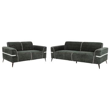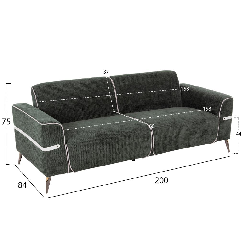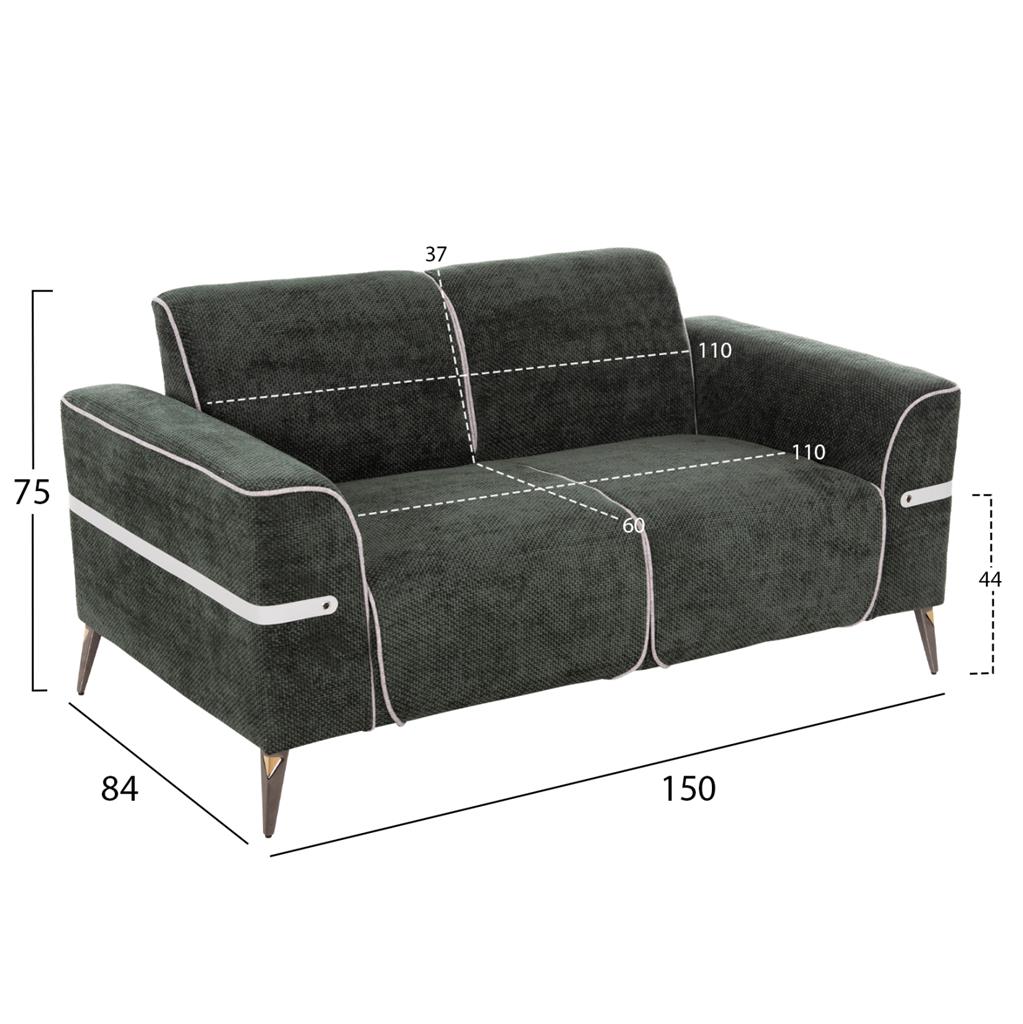 The brand-new FERIN 2pcs sofa set is here to steal the show. It consists of a two-seater and a three-seater sofa of the same aesthetic. The upholstery of both sofas is made with high-quality textured fabric in GREEN color, while the legs are metal and high in glossy DARK BROWN color. Moving on to the seat of the sofas, what impresses is the construction with pocket springs, which really elevates the feeling of comfort they offer!
