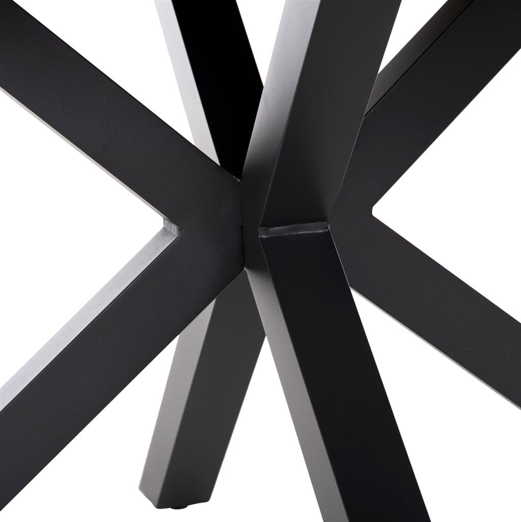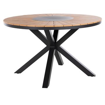MORIL is a round outdoor table with an aluminum frame in a cross-base arrangement and ANTHRACITE color. The tabletop is made of polywood plates in NATURAL wood color. It is a beautiful table in large dimensions, which can serve at least 6 people.