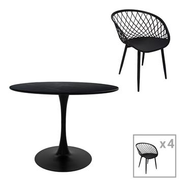 Five-piece set:-Round table Balou I pakoworld MDF in black finish, Φ120x75cm
