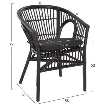 The DAMPAR armchair is mainly for outdoor spaces, and it basically has no separate arms but its design hugs the body. Its frame, like the seat, is made of Rattan, while the cushion on the seat is comfortable and is tied to the seat with laces. The whole armchair is BLACK color.