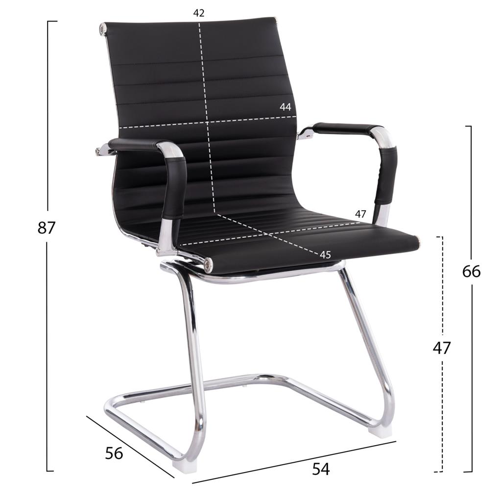 The BOSS collaboration/guest chair will catch all eyes! Its subtle metallic and anatomical curves and the combination of BLACK PU leather with horizontal seams, with metallic chrome parts will cause admiration alone. The arms are also covered in BLACK PU leather. The back is comfortable and square while the seat is flat.