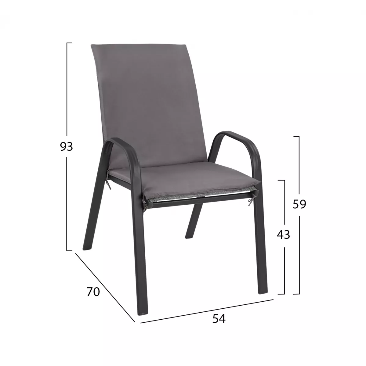 Outdoor armchair metallic grey with textilene 2x1 high resistance to sun and rain,