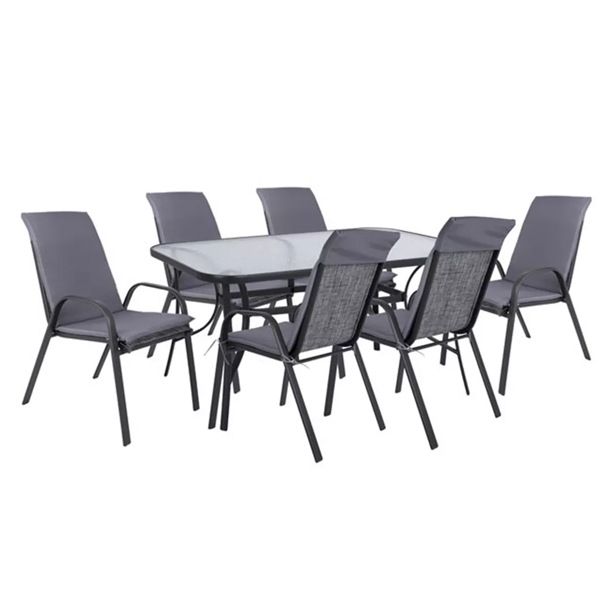 Six outdoor armchairs made of metal frame in grey color with textilene 2x1 of high resistance to sun and rain, with waterproof cushion in grey shade.