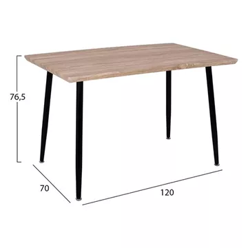 An attractive and modern table with black metal base and sonama surface made of mdf.