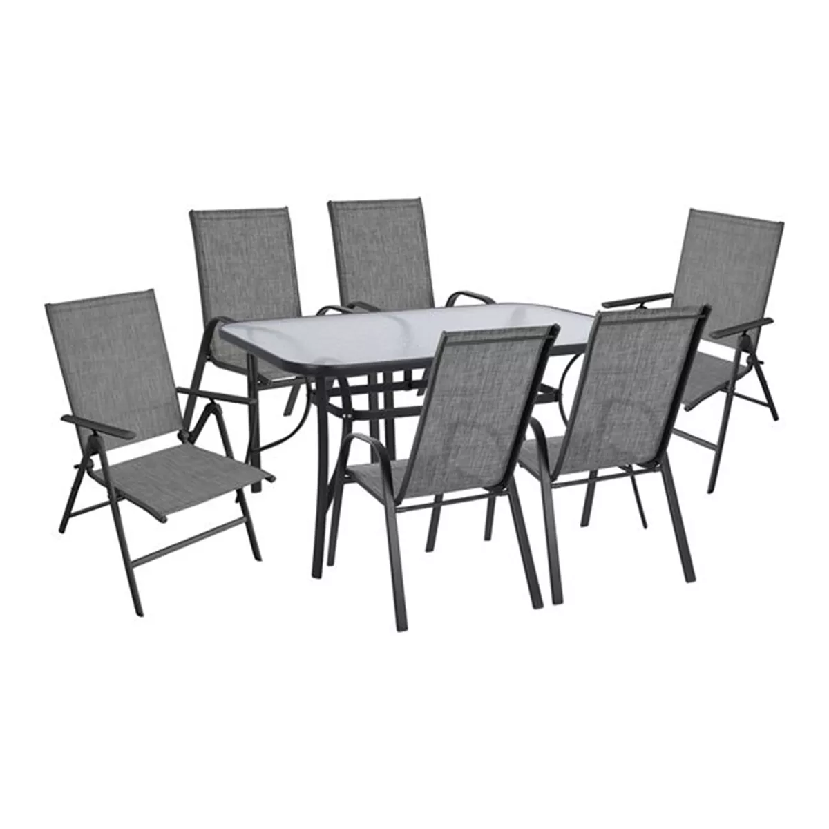 frame, upholstered in textilene fabric in grey.