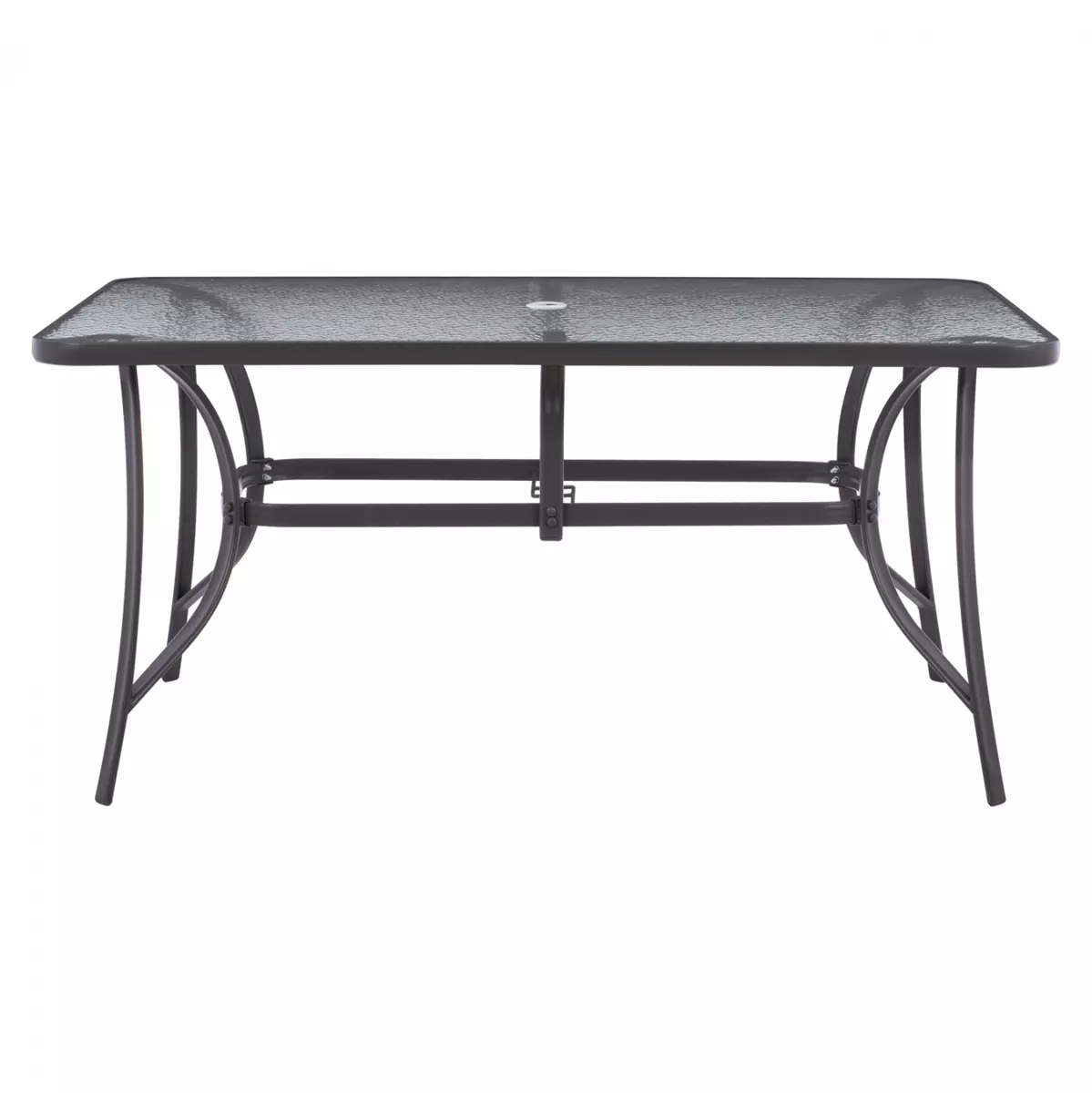 It has a hole in the center for placing an umbrella.