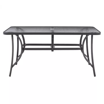 Outdoor metal table in gray with built-in safety glass (secure).