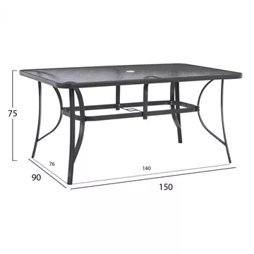 TABLE 150X90Χ75cm. METALLIC RECTANGULAR GRAY WITH UMBRELLA HOLE D38cm HM5145.11