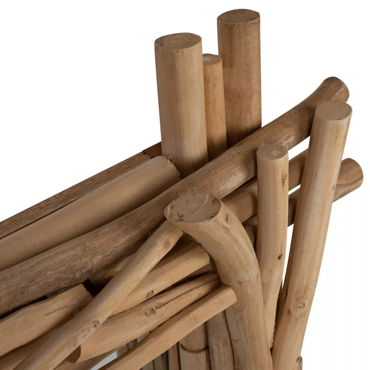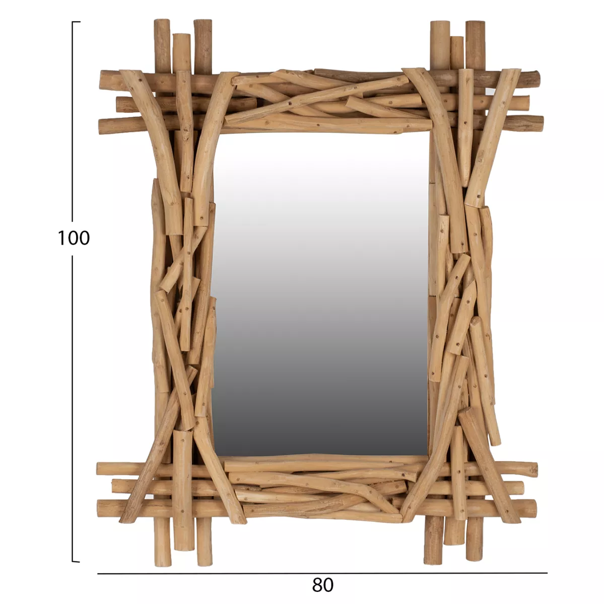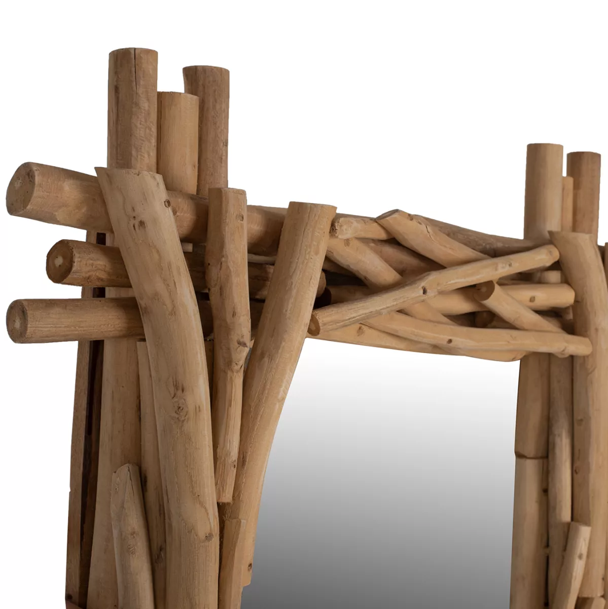 Apart from the mirror, the rest of the construction is made of solid branches of TEAK tree. When we refer to solid wood, we mean wood made entirely from the trunk of a tree. Solid wood is the most expensive choice in terms of wood but stands out for its timeless aesthetics.