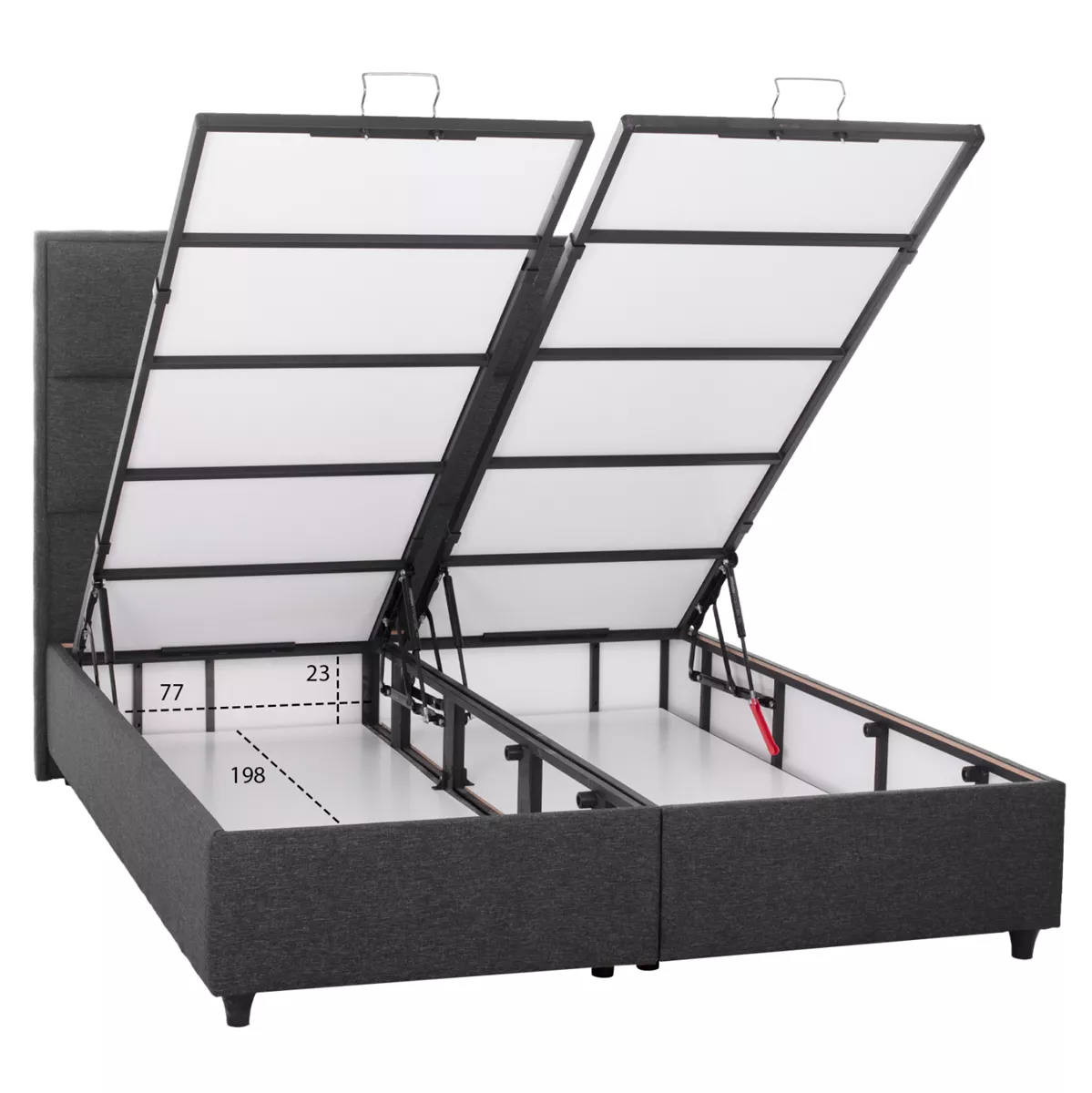 Storage space dimensions: 77x198x23 cm (x2)