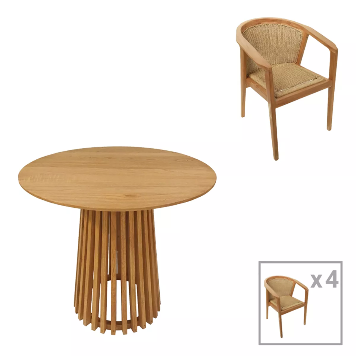 Granny-Kenda pakoworld dining set 5pcs in natural-beige shade Φ80x75cm