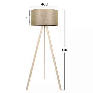 Floor lamp with tripod from 100% MDF in natural color. The cylindrical "cap" of the lamp is in a mesmerizing golden brown coloring. A beautiful floor lamp that will create the atmosphere you have always imagined for your space, so that you can create your own corner of relaxation or even decoration. Because Light means more than just a lamp. It means Decoration, Atmosphere, Art, Taste, and of course Science.