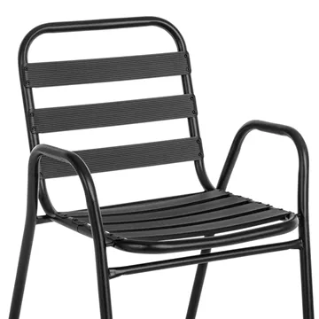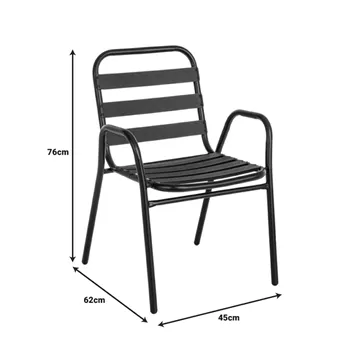 - Sturdy frame made from high-quality metal, resistant to wear and time. The seat and backrest are made from aluminum slats. The metal provides durability and stability, while the aluminum slats add lightness and a modern touch to the design. This armchair is ideal for outdoor use, as aluminum's resistance to weather conditions makes it durable when exposed to sunlight and moisture.