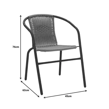 Sturdy metal frame, resistant to stress and wear. The seat and backrest are made of premium-quality PE rattan. PE rattan is an eco-friendly synthetic rattan, recyclable and more durable than other types.