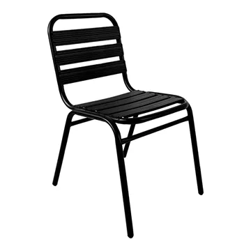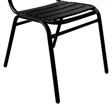 • Sturdy frame made of premium-quality metal, highly resistant to wear and aging. The seat and backrest sections are crafted from aluminum slats. The metal ensures durability and stability, while the aluminum slats add lightness and a modern touch to the design. This chair is ideal for outdoor use, as the aluminum's weather resistance makes it highly durable under sun exposure and humidity.