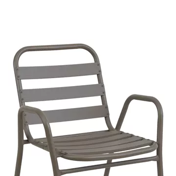 - Σταθερός σκελετός από μέταλλο εξαιρετικής ποιότητας με αντοχή σε φθορά και χρόνο, ενώ τα κομμάτια έδρας και πλάτης είναι κατασκευασμένα από φέτες αλουμινίου. Το μέταλλο παρέχει ανθεκτικότητα και σταθερότητα, ενώ οι φέτες αλουμινίου προσθέτουν ελαφρότητα και μια μοντέρνα αίσθηση στον σχεδιασμό. Η πολυθρόνα αυτή είναι ιδανική για χρήση σε εξωτερικούς χώρους, καθώς η ανθεκτικότητα στις καιρικές συνθήκες του αλουμινίου την καθιστά ανθεκτική σε έκθεση στον ήλιο και την υγρασία.