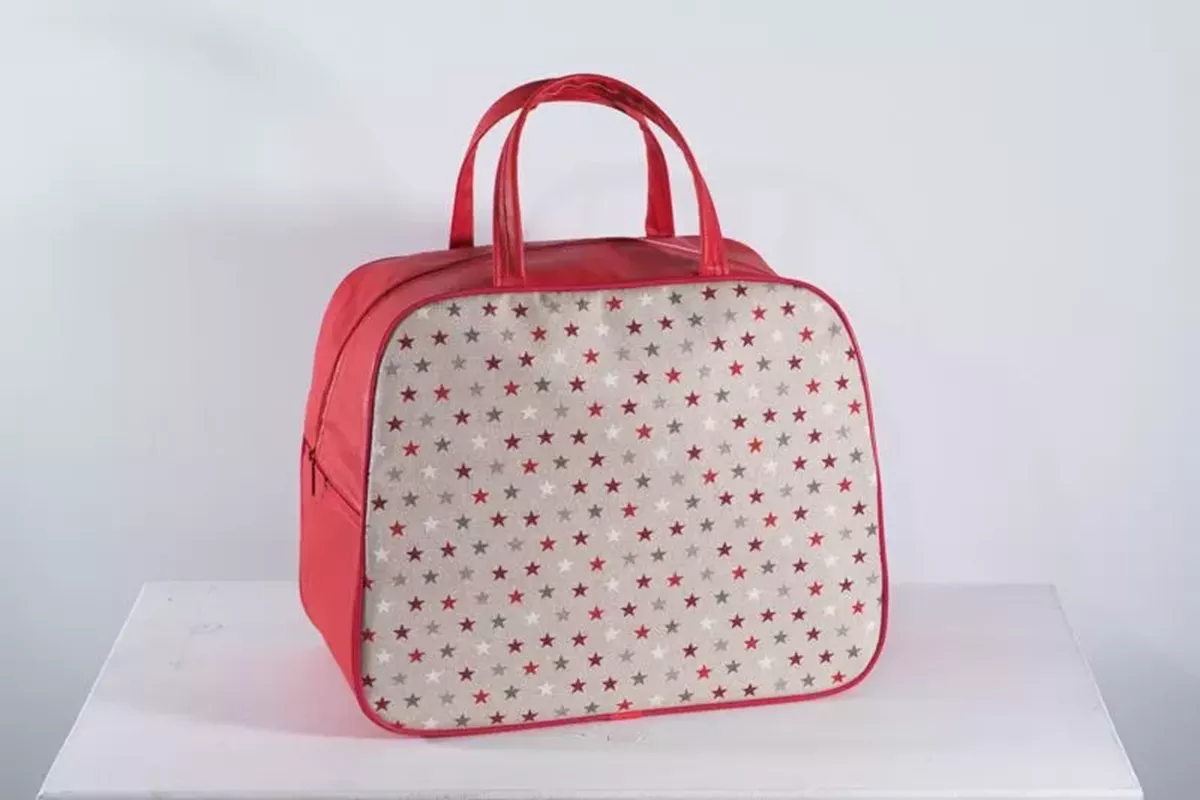Τσάντα Χειρός απο δερματίνη και ύφασμα. Μεγάλο μέγεθος, ιδανικό για βαπτιστική τσάντα. Κλείσιμο με φερμουάρ και χερούλια μεταφοράς