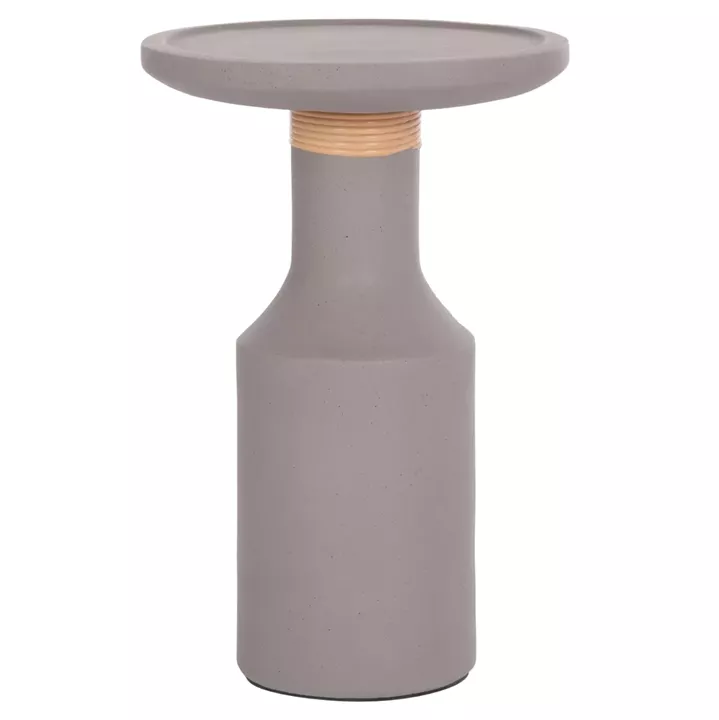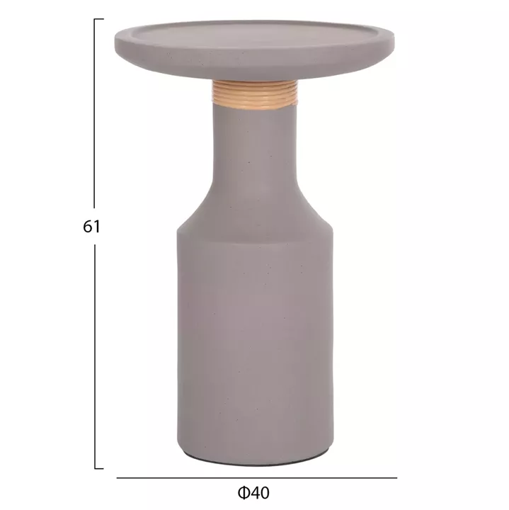 Το βοηθητικό τραπέζι σαλονιού TRED(Τ) είναι ψηλό και στρογγυλό με minimal διακόσμηση/επένδυση στον μακρύ «λαιμό» από φυσικό Rattan. Είναι κατασκευασμένο εξολοκλήρου από Fiber Cement σε ΓΚΡΙ χρώμα και αποτελεί ιδανικό συμπλήρωμα τόσο για το σπίτι, όσο και για επαγγελματικούς χώρους, όπως ξενοδοχεία, AirBnB, κτλ.