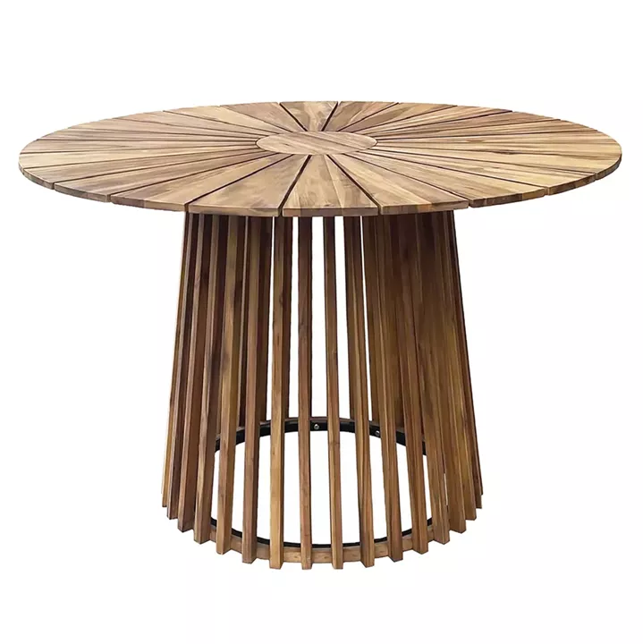 Το CRISTOBAL είναι ένα στρογγυλό τραπέζι τραπεζαρίας εξωτερικού χώρου σε μεσαία διάσταση σε φυσικό χρώμα ξύλου. Η επιφάνεια του τραπεζιού αποτελείται από «φέτες» ξύλου ακακίας και στηρίζεται σε μια ξύλινη κατασκευή στο κέντρο με πολλές δοκούς σε κυκλική διάταξη που ενώνονται μεταξύ τους με μεταλλικό σκελετό στην εσωτερική πλευρά. Αυτό το τραπέζι θα αναβαθμίσει αισθητικά την τραπεζαρία σας ενώ μπορεί να ταιριάξει με πολλά διαφορετικά στυλ και χρώματα στον τριγύρω χώρο, όπως και με διαφορετικά στυλ καρέκλας.