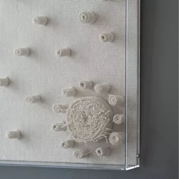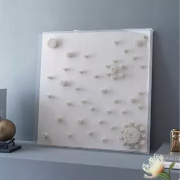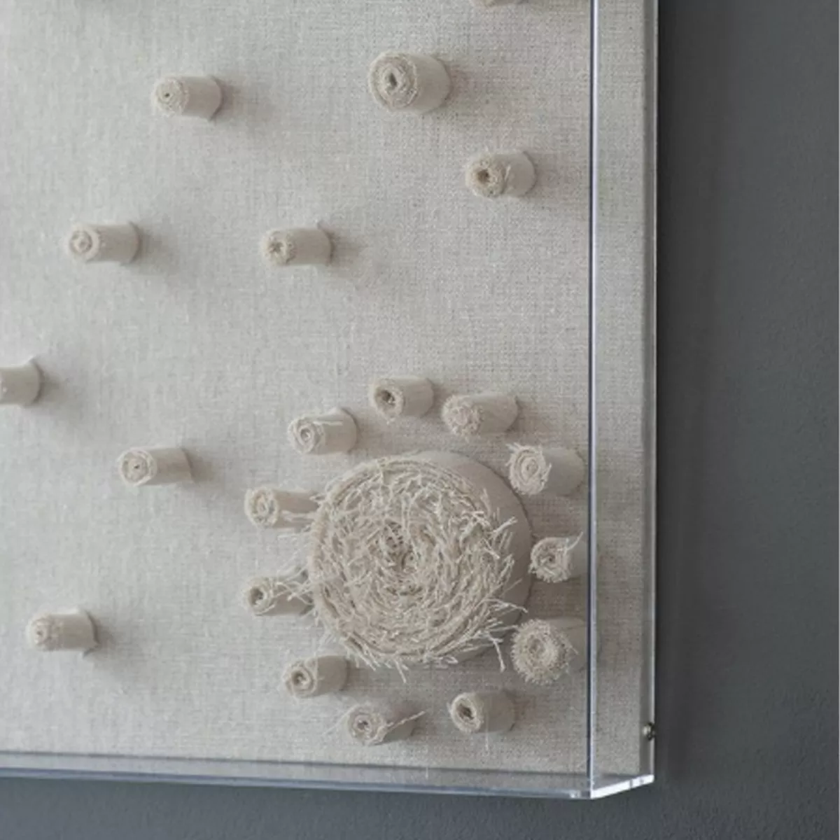 Μπεζ Διακοσμητικός Πίνακας με Υφασμάτινη Τεχνοτροπία σε Plexiglass Κορνίζα