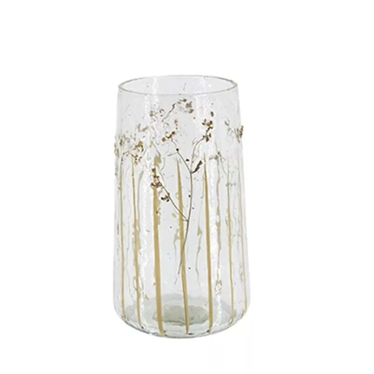Διάφανο Γυάλινο Βάζο Διακοσμημένο με Αγριόχορτα