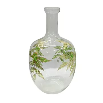 Διάφανο Γυάλινο Βάζο Διακοσμημένο με Πράσινα Λουλούδια