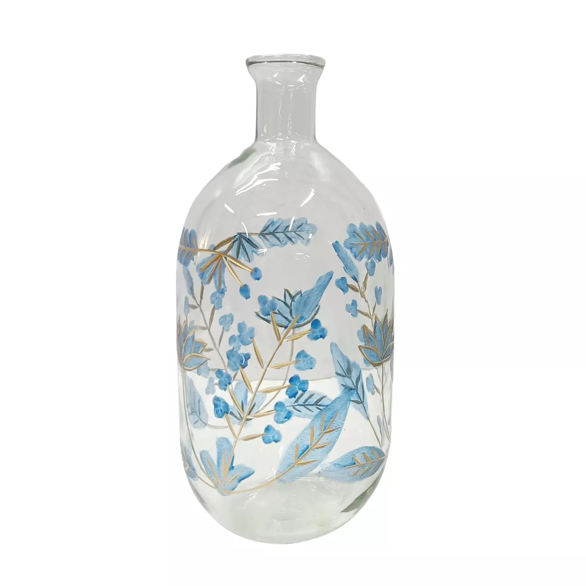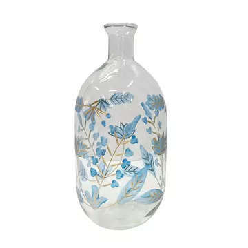 Διάφανο Γυάλινο Βάζο Διακοσμημένο με Μπλε Λουλούδια
