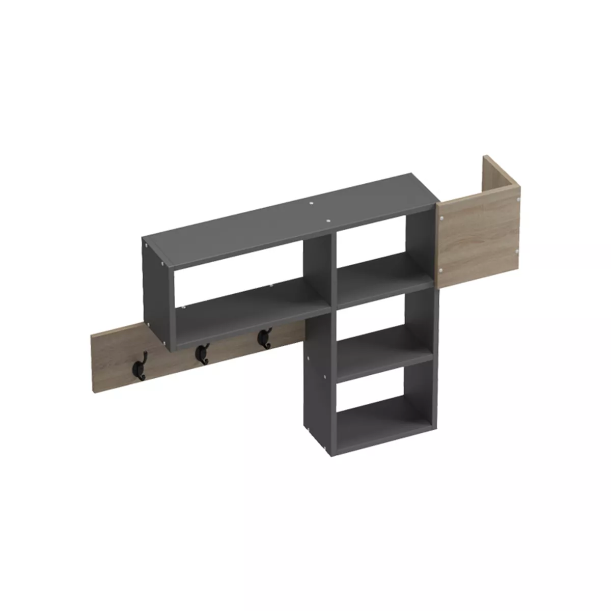 Αξιοποιήστε στο έπακρο τον χώρο της εισόδου, του χωλ ή οποιουδήποτε δωματίου με αυτή την ευέλικτη και μοντέρνα σύνθεση τοίχου. Συνδυάζει την πρακτικότητα μιας κρεμάστρας με τον επιπλέον αποθηκευτικό χώρο των ραφιών.
