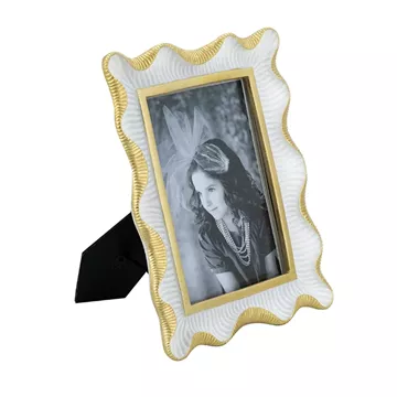 Λευκή Κορνίζα Ρητίνης για Φωτογραφία 5Χ7" με Χρυσές Λεπτομέρειες