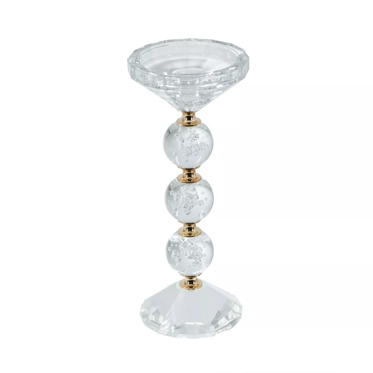 Διάφανο Γυάλινο Κηροπήγιο με Χρυσές Λεπτομέριες