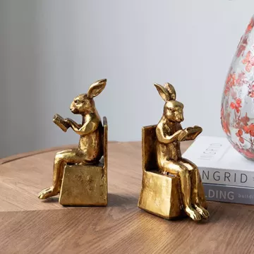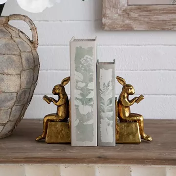 Artekko Bookends Χρυσοί Βιλιοστάτες Ρητίνης με Λαγουδάκια (10x7x17.5)cm 2pcs