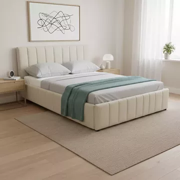 Το κρεβάτι διαθέτει έναν εύχρηστο μηχανισμό ανύψωσης του στρώματος, ο οποίος αποκαλύπτει έναν ευρύχωρο αποθηκευτικό χώρο από κάτω. Αυτό καθιστά εξαιρετικά εύκολη την τακτοποίηση κλινοσκεπασμάτων, μαξιλαριών, ρούχων εκτός εποχής ή άλλων αντικειμένων, συμβάλλοντας αποτελεσματικά στην οργάνωση και την τάξη του χώρου.