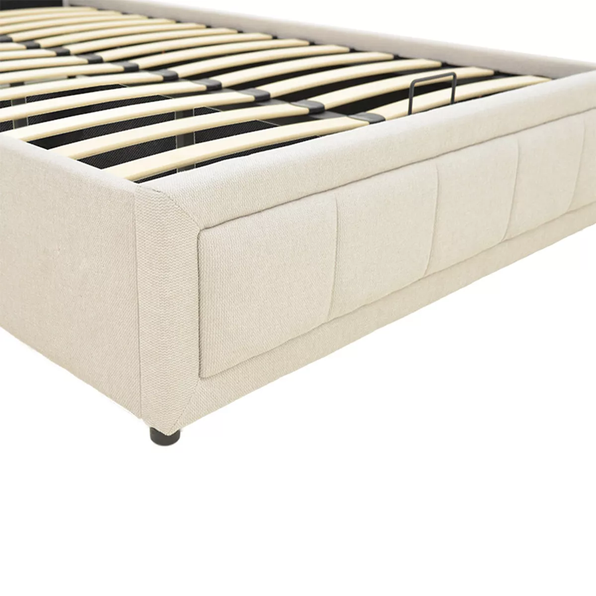 Διαθέτει έναν εύχρηστο μηχανισμό ανύψωσης του στρώματος, ο οποίος αποκαλύπτει έναν ευρύχωρο αποθηκευτικό χώρο από κάτω. Αυτό καθιστά εύκολη την τακτοποίηση κλινοσκεπασμάτων, μαξιλαριών, ρούχων εκτός εποχής ή άλλων αντικειμένων, συμβάλλοντας στην οργάνωση και την τάξη του χώρου.