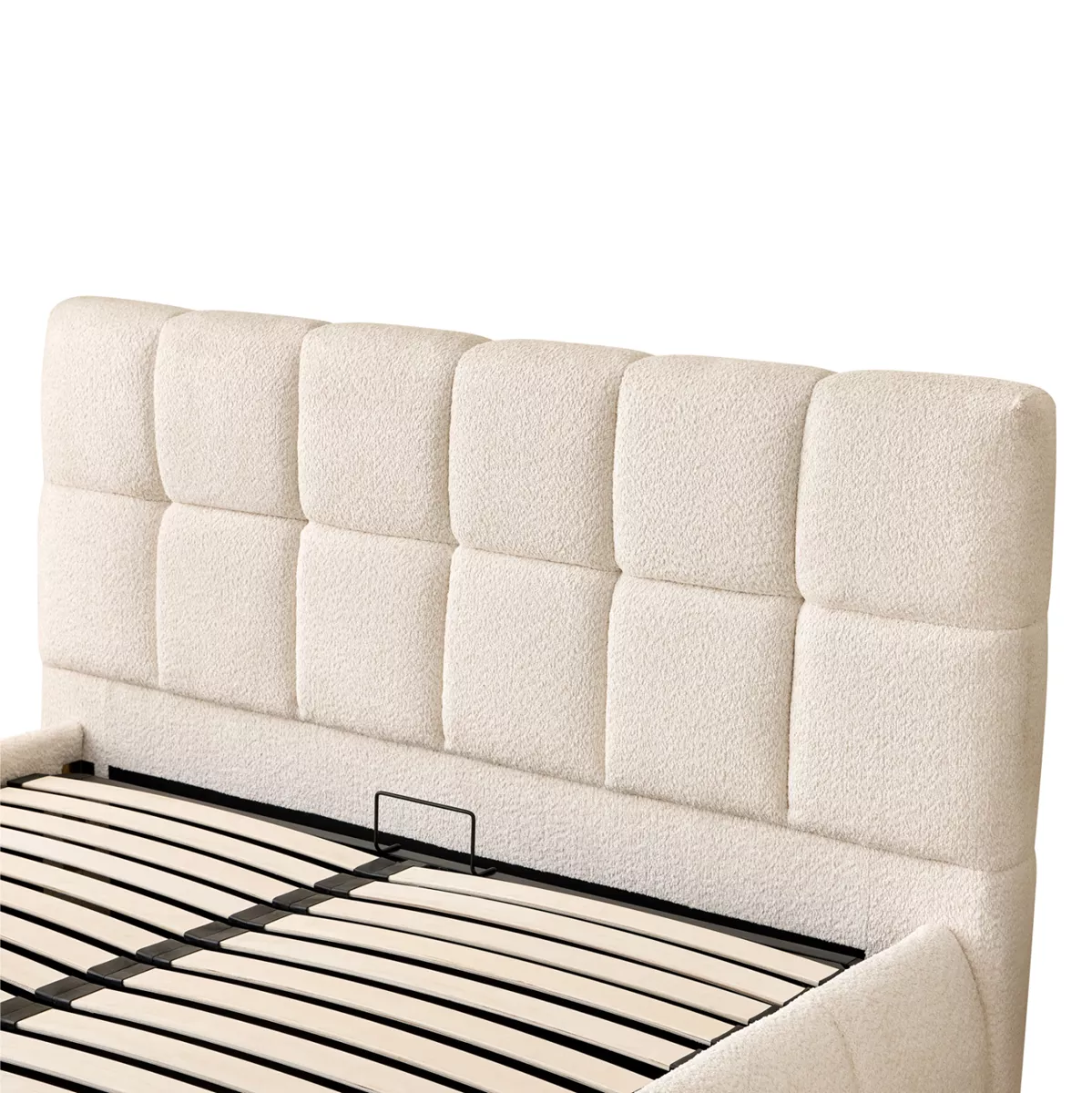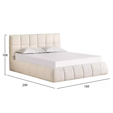 Το στρώμα στηρίζεται σε 20 σειρές εργονομικές τάβλες στήριξης, οι οποίες τοποθετούνται σε ένα μεταλλικό πλαίσιο που ανασηκώνεται με μηχανισμό ασφαλείας, προσφέροντας έναν μεγάλο αποθηκευτικό χώρο επενδυμένο επίσης με ύφασμα. Μια μοντέρνα πρόταση που θα ανανεώσει το υπνοδωμάτιό σας.