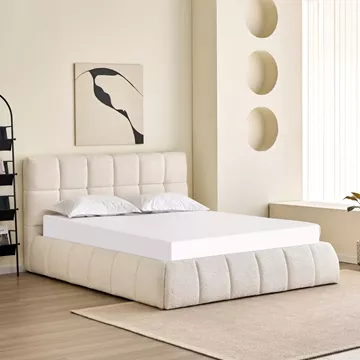 Το διπλό κρεβάτι EDDY (για στρώμα 160x200) είναι καινούργια προσθήκη στην γκάμα μας. Διαθέτει επένδυση με ΜΠΕΖ μπουκλέ ύφασμα σε καπιτονέ τεχνοτροπία.