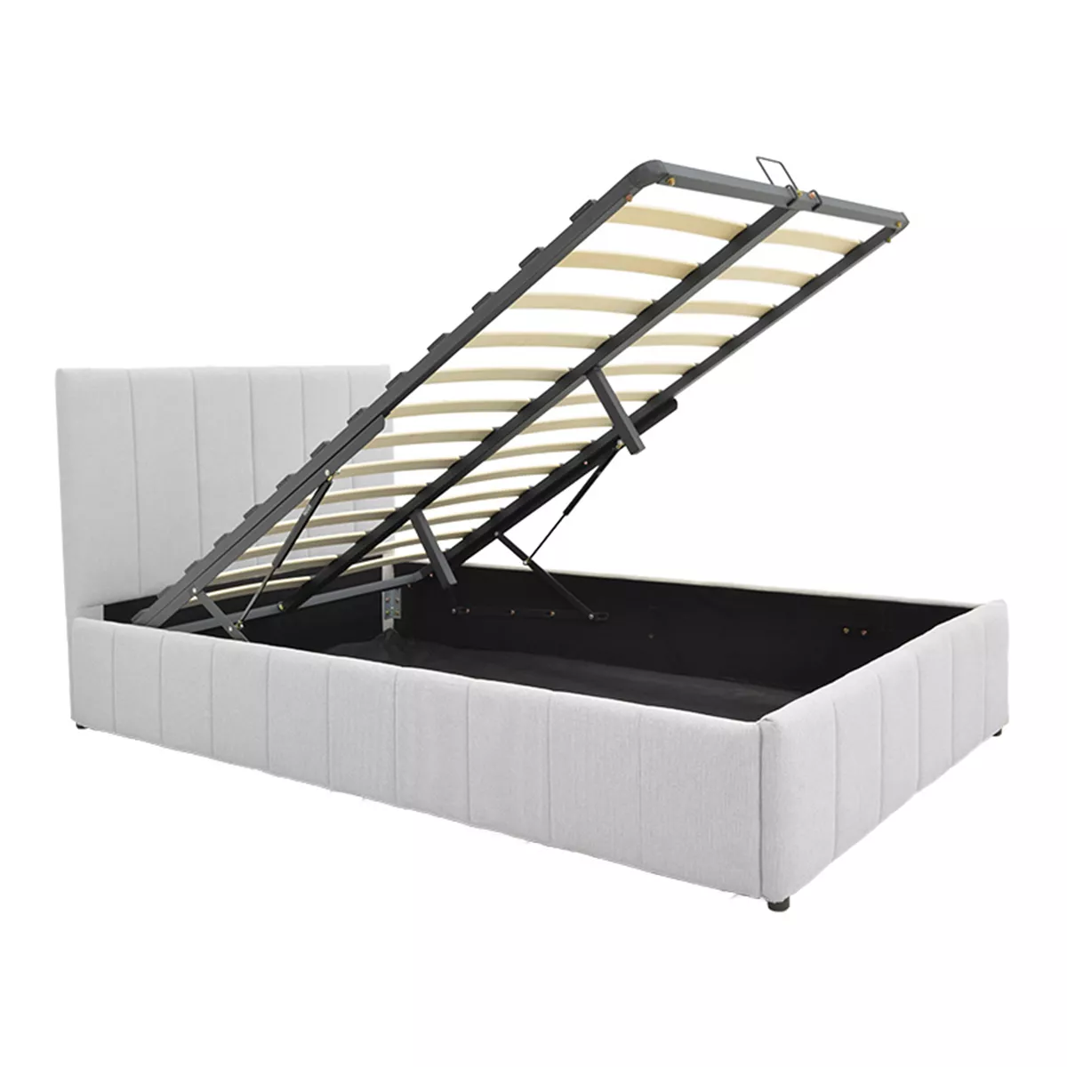 Το κρεβάτι διαθέτει έναν εύχρηστο μηχανισμό ανύψωσης του στρώματος, ο οποίος αποκαλύπτει έναν ευρύχωρο αποθηκευτικό χώρο από κάτω. Αυτό καθιστά εξαιρετικά εύκολη την τακτοποίηση κλινοσκεπασμάτων, μαξιλαριών, ρούχων εκτός εποχής ή άλλων αντικειμένων, συμβάλλοντας αποτελεσματικά στην οργάνωση και την τάξη του χώρου.