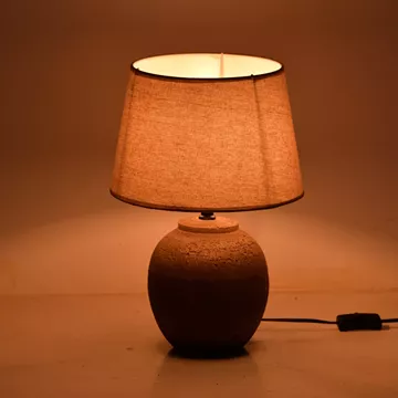 Επιτραπέζιο Φωτιστικό με Κεραμική Βάση LurataΑναβαθμίστε τον χώρο σας με το κομψό επιτραπέζιο φωτιστικό Lurata. Σχεδιασμένο για να προσθέσει μια πινελιά ζεστασιάς και εκλεπτυσμένου χαρακτήρα σε κάθε δωμάτιο, αυτό το φωτιστικό συνδυάζει την ανθεκτικότητα της κεραμικής με την απαλή λάμψη του υφασμάτινου αμπαζούρ.