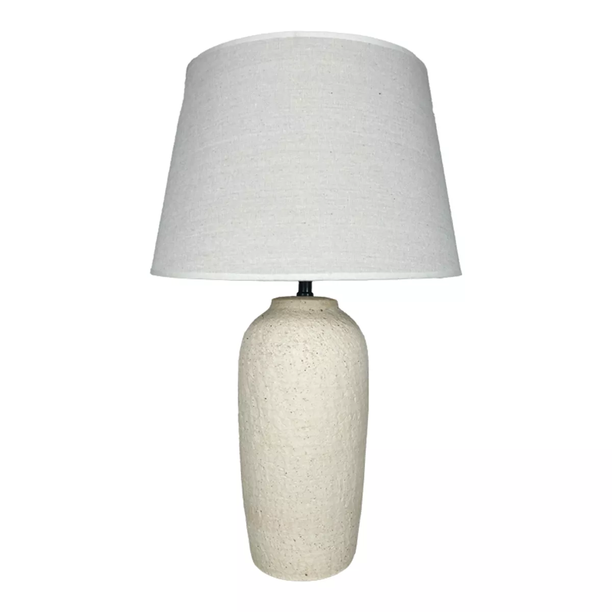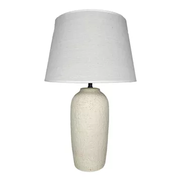 Η βάση του φωτιστικού ξεχωρίζει χάρη στην πλούσια, ανάγλυφη υφή της και προσδίδει βάθος και χαρακτήρα, κάνοντας κάθε φωτιστικό μοναδικό. Το λιτό, υφασμάτινο αμπαζούρ συμπληρώνει ιδανικά τη βάση, διαχέοντας ένα απαλό και ομοιόμορφο φως που δημιουργεί μια φιλόξενη και χαλαρωτική ατμόσφαιρα.