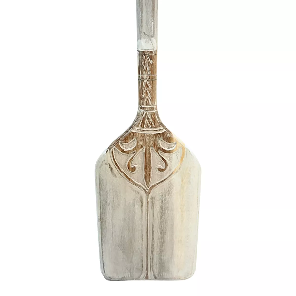 Το ξύλινο κουπί Boon είναι ένα λειτουργικό και διακοσμητικό αντικείμενο που αποπνέει ρουστίκ γοητεία. Η χειροποίητη εμφάνιση και η παλαιωμένη του αισθητική το καθιστούν ιδανικό για να προσθέσει μια ναυτική πινελιά σε κάθε χώρο, είτε ως διακοσμητικό τοίχου, είτε ως μέρος μιας ρουστίκ διακόσμησης.