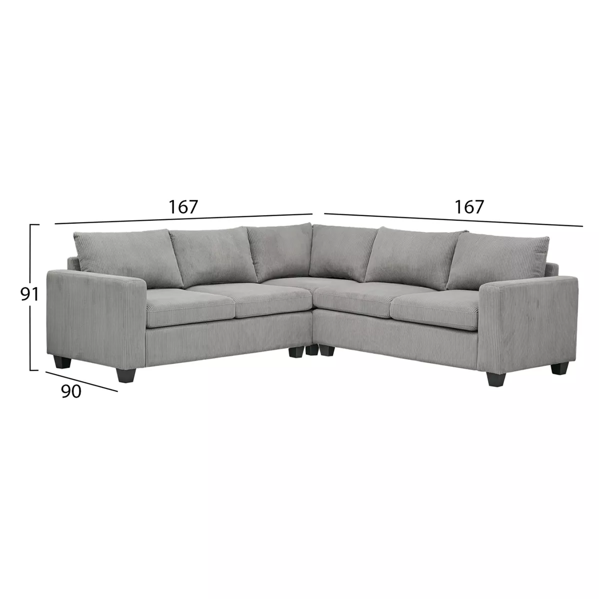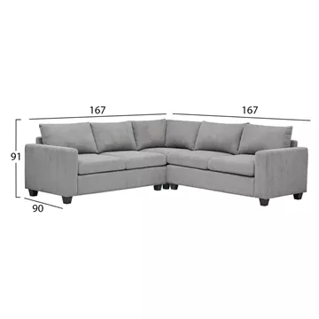 Ο CALDER είναι ένας μεγάλος σταθερός γωνιακός καναπές. Το χρώμα της επένδυσης ολόκληρου του καναπέ είναι ΓΚΡΙ. Αποτελείται από 2 πλευρές με ίδιες διαστάσεις και ένα γωνιακό τμήμα που δένει τις 2 πλευρές. Τέλος, τα πόδια του καναπέ είναι χαμηλά δίνοντας στιβαρότητα σε όλη την κατασκευή.