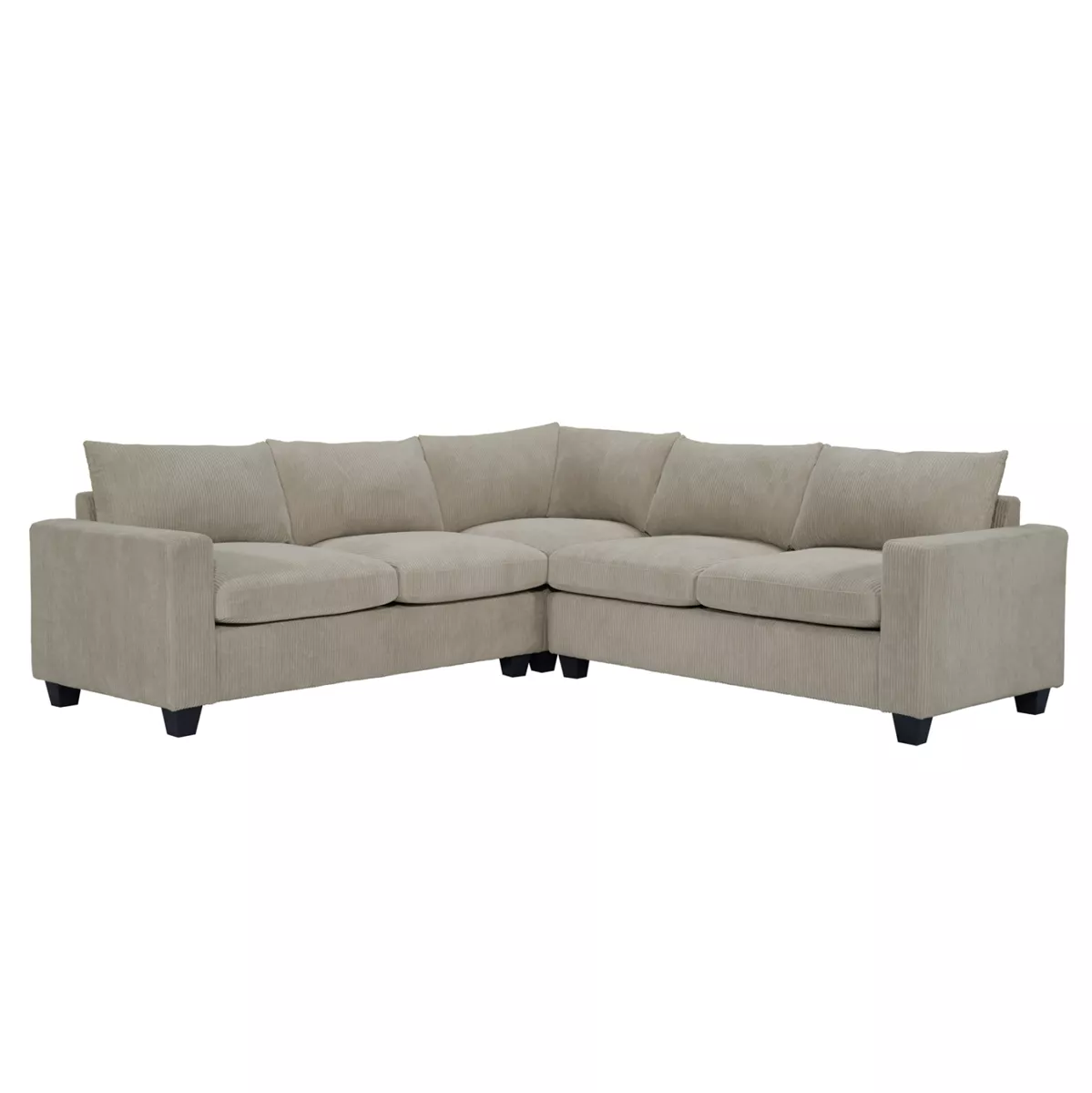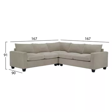 Ο CALDER είναι ένας μεγάλος σταθερός γωνιακός καναπές. Το χρώμα της επένδυσης ολόκληρου του καναπέ είναι ΜΠΕΖ. Αποτελείται από 2 πλευρές με ίδιες διαστάσεις και ένα γωνιακό τμήμα που δένει τις 2 πλευρές. Τέλος, τα πόδια του καναπέ είναι χαμηλά δίνοντας στιβαρότητα σε όλη την κατασκευή.