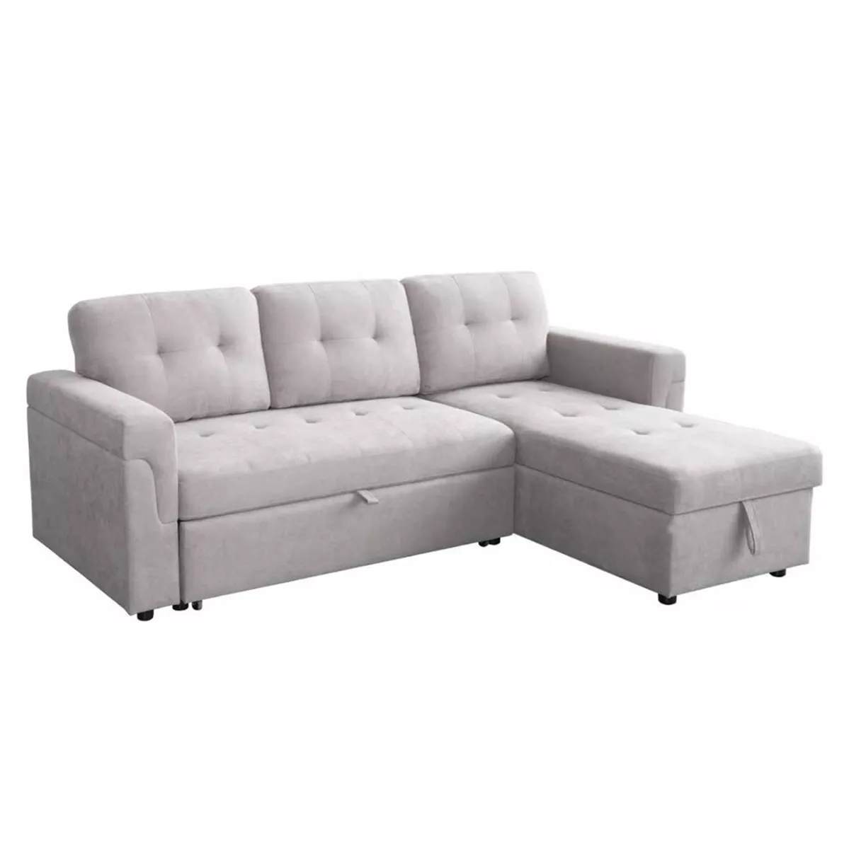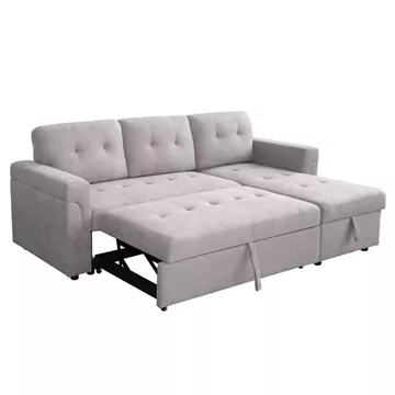 Ο SAL είναι ένας όμορφος και πρακτικός γωνιακός καναπές. Το χρώμα της επένδυσης ολόκληρου του καναπέ είναι ΑΝΟΙΧΤΟ ΓΚΡΙ. Εκτός από γωνιακός καναπές, γίνεται και κρεβάτι τραβώντας με δύο ιμάντες το έξτρα «ράντζο» που βρίσκεται κάτω από το κυρίως κάθισμα. Επίσης, ο καναπές μπορεί να στηθεί είτε με δεξιά γωνία, είτε με αριστερή (αναστρέψιμος) ενώ διαθέτει και αποθηκευτικό χώρο κάτω από το τμήμα της γωνίας. Τέλος, τα πόδια του καναπέ είναι χαμηλά δίνοντας στιβαρότητα σε όλη την κατασκευή.