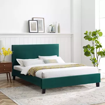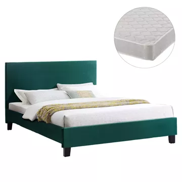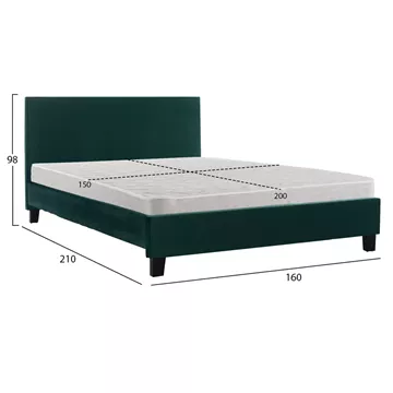 Το διπλό κρεβάτι BECCA είναι επενδυμένο με βελούδο σε ΚΥΠΑΡΙΣΣΙ χρώμα. Το στρώμα που συνοδεύει το κρεβάτι τοποθετείται σε δύο σειρές ανατομικές τάβλες, είναι διπλής όψης και είναι τεχνολογίας continuous spring. Τα πόδια είναι σχετικά ψηλά από πολυπροπυλένιο σε μαύρο χρώμα.