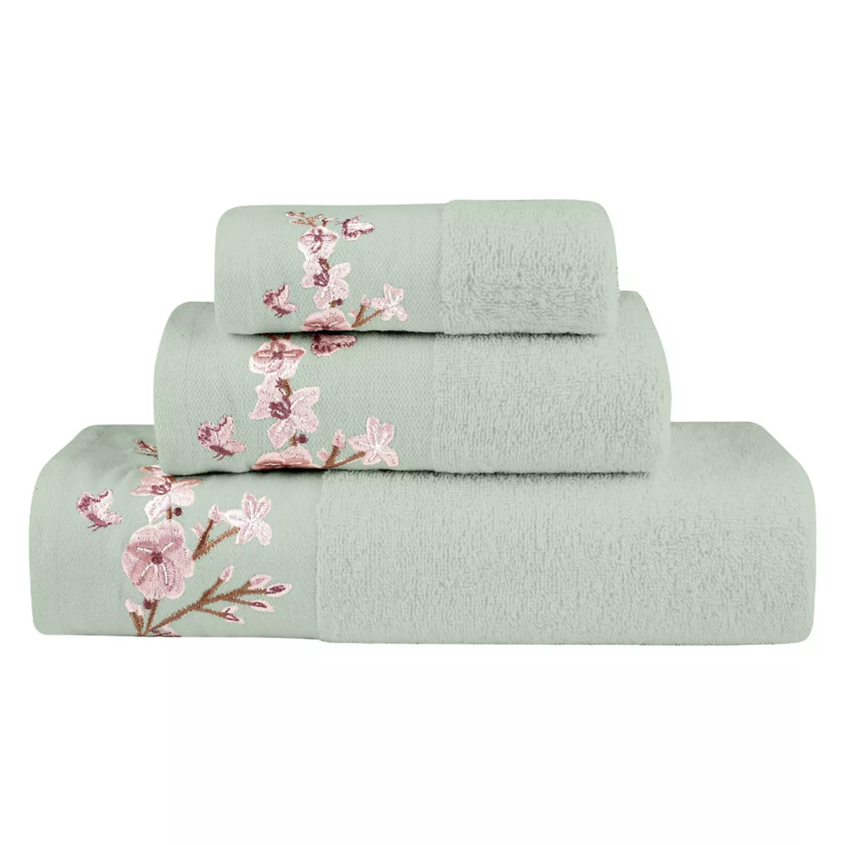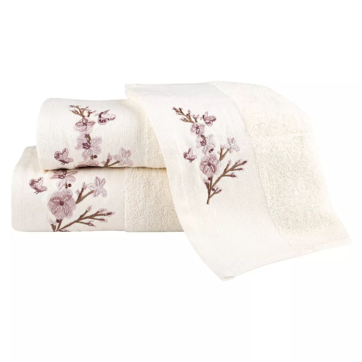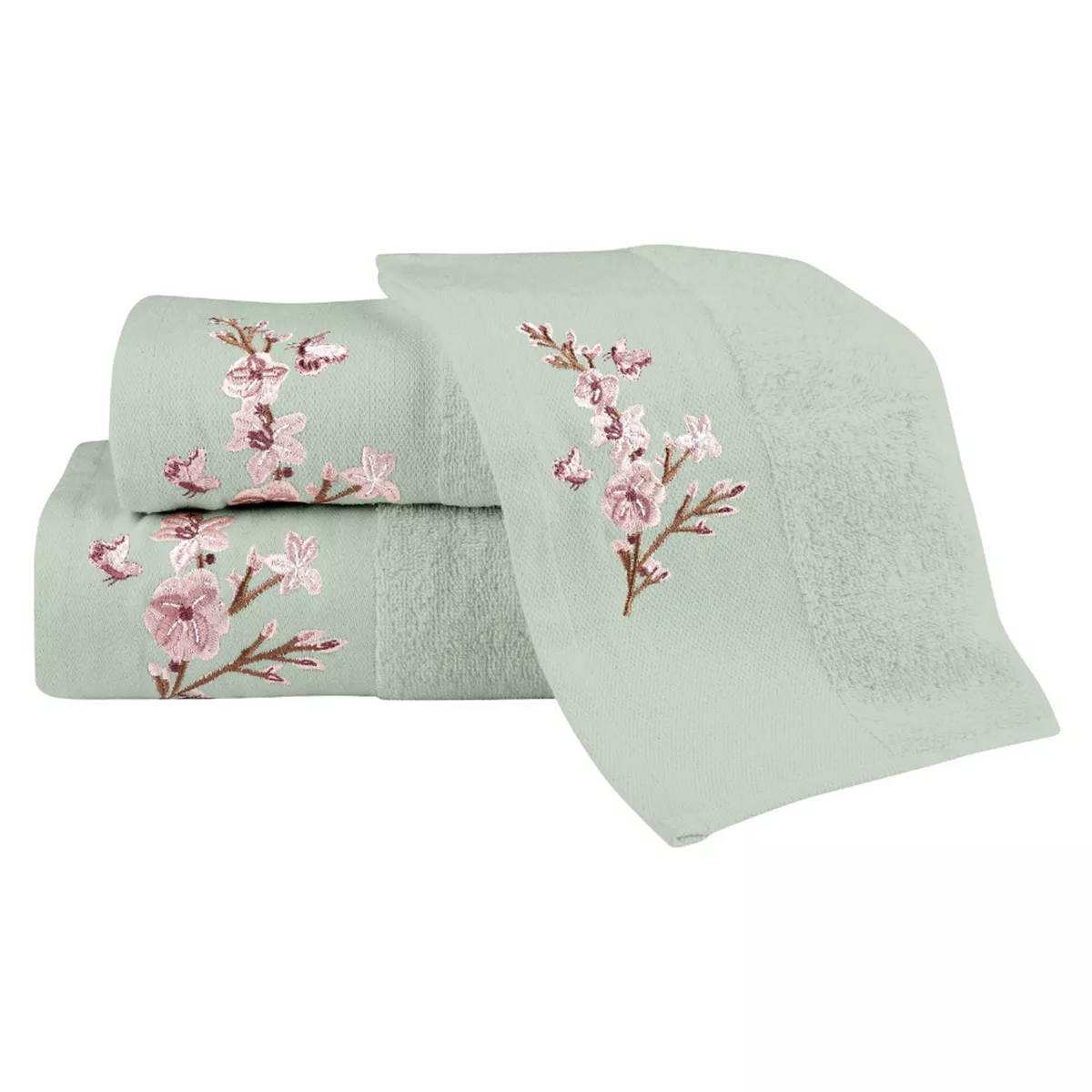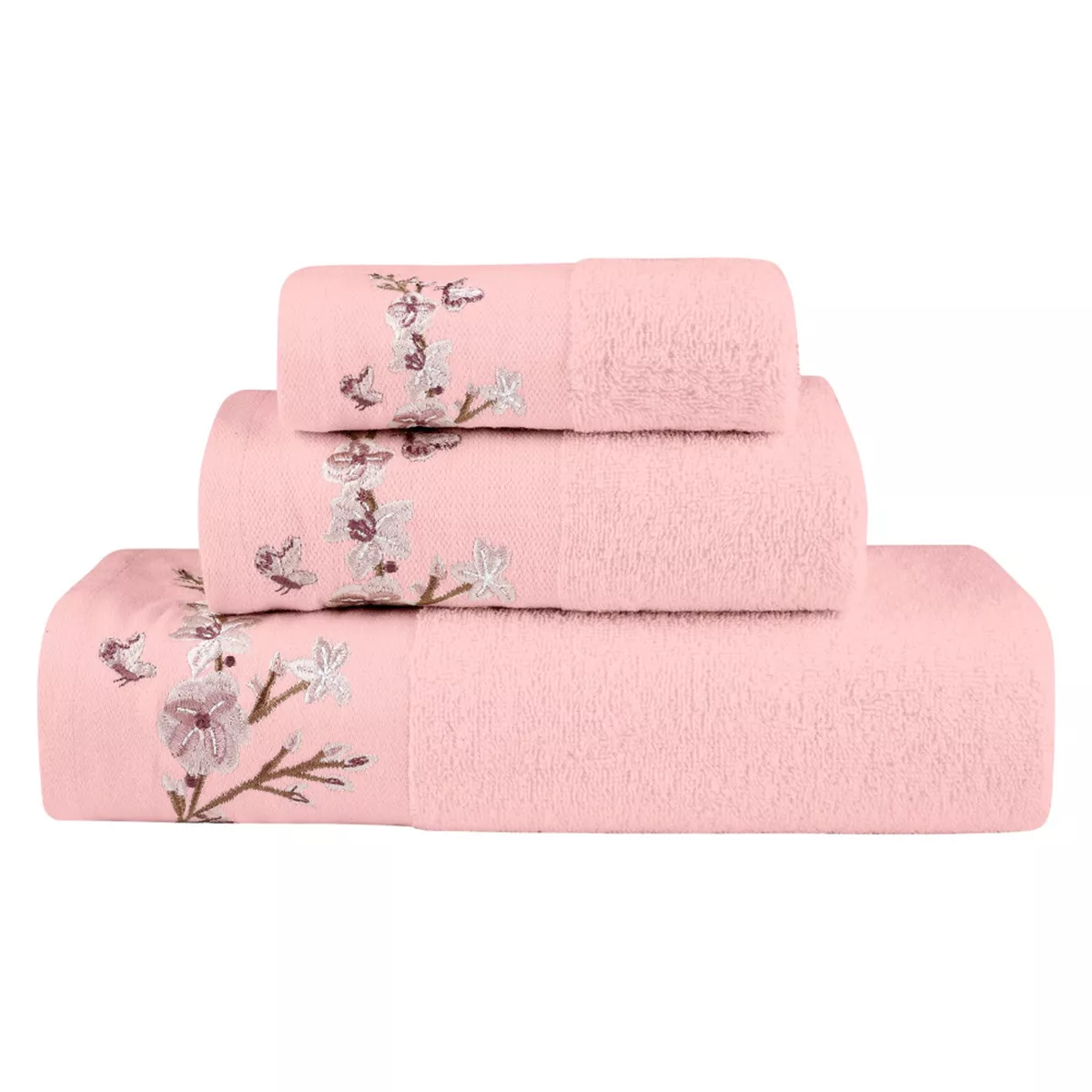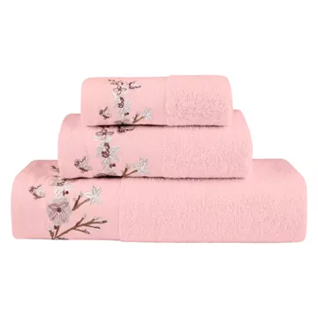 Σετ πετσέτες 3 τεμαχίων, μπάνιου, προσώπου και χειρός, από ύφασμα φροτέ, πενιέ, 100% βαμβακερό, με κέντημα.Διατίθεται σε 4 χρώματα.