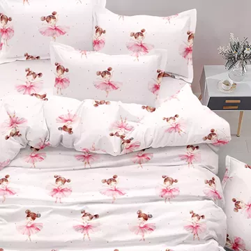 Σετ κουβερλί μονό με μαξιλαροθήκη oxford style από ύφασμα microfiber,100% πολυέστερ, εμπριμέ, με γραμμικό μοτίβο και παιδικό σχέδιο με μπαλαρίνες.
