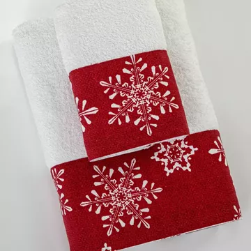 Σετ πετσέτες 2 τεμαχίων, προσώπου και χειρός, από ύφασμα φροτέ, πενιέ, 100% βαμβακερό, με διακοσμητική χριστουγεννιάτικη φάσα ύφασμα.