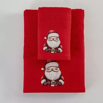 Σετ πετσέτες 2 τεμαχίων, προσώπου και χειρός, από ύφασμα φροτέ, πενιέ, 100% βαμβακερό, με απλικέ χριστουγεννιάτικο.Διατίθεται σε 2 χρώματα.