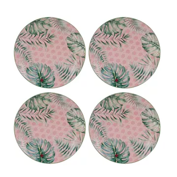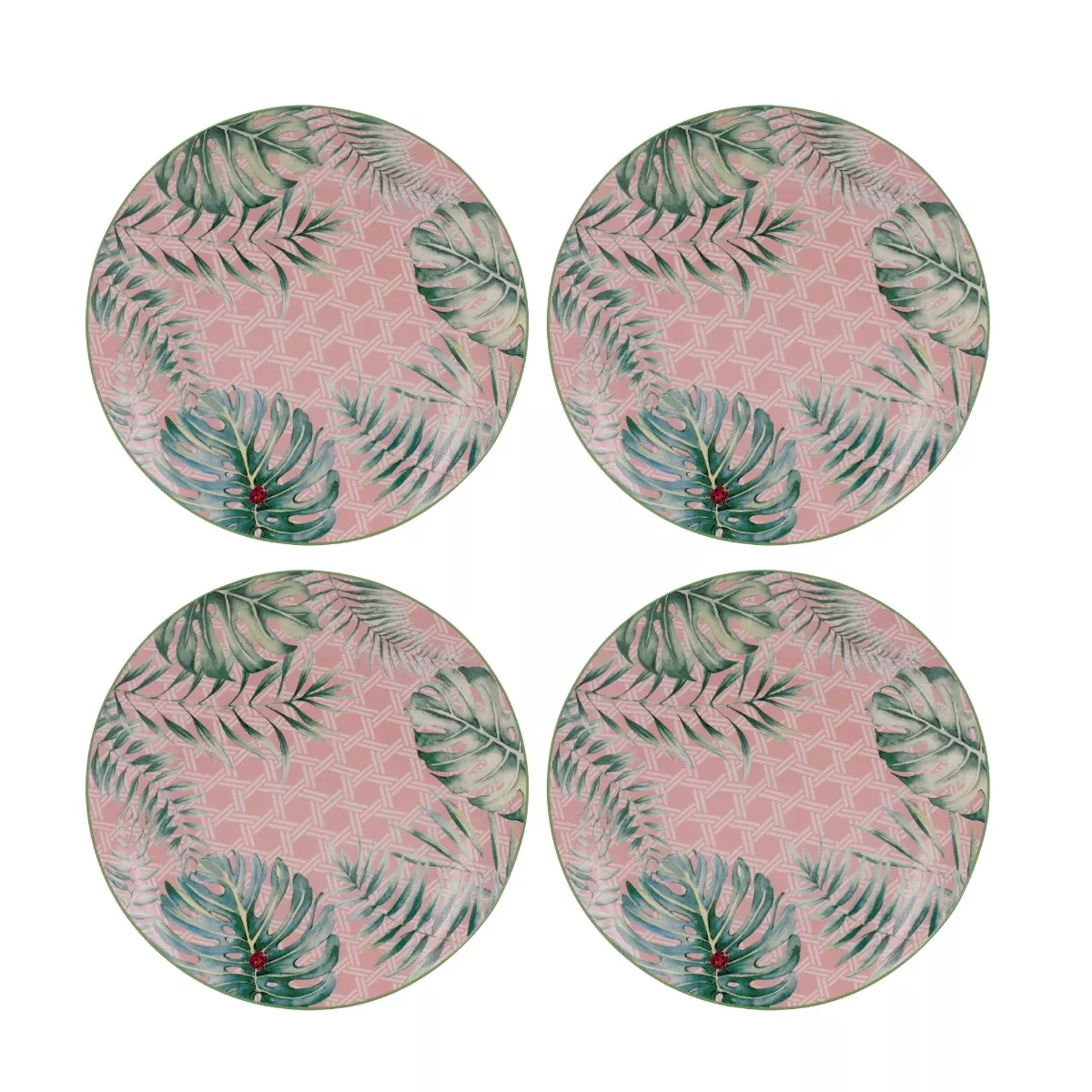 Artekko Tropical Ρηχά Πήλινα Πιάτα με Πράσινα και Ροζ Σχέδια (20x20x2)cm 4pcs