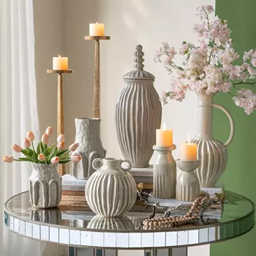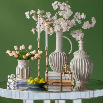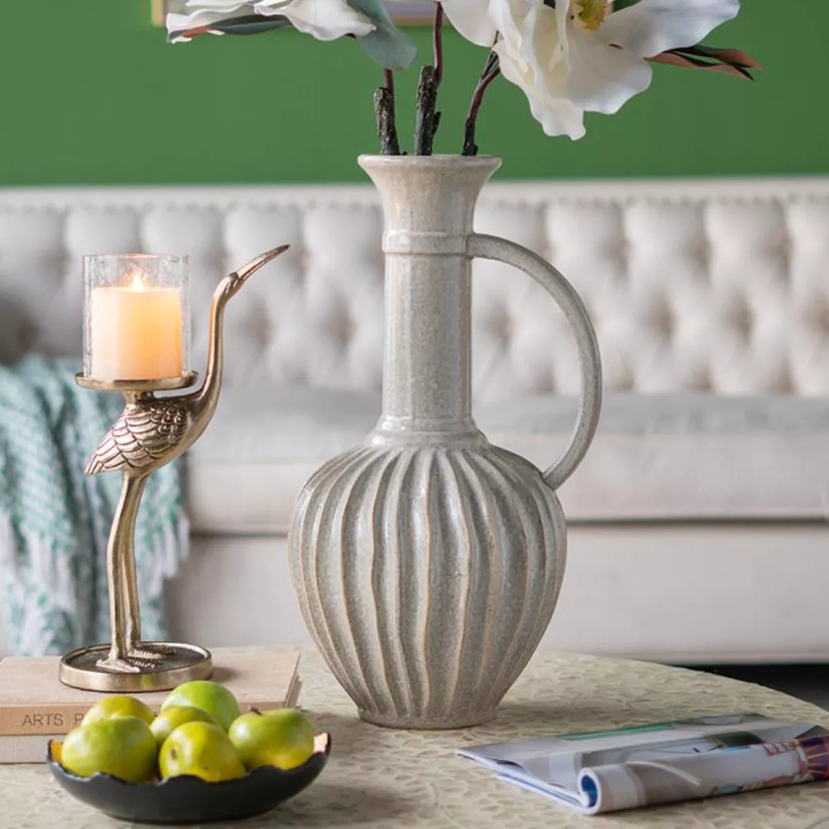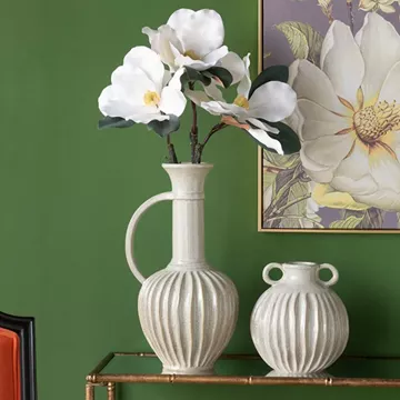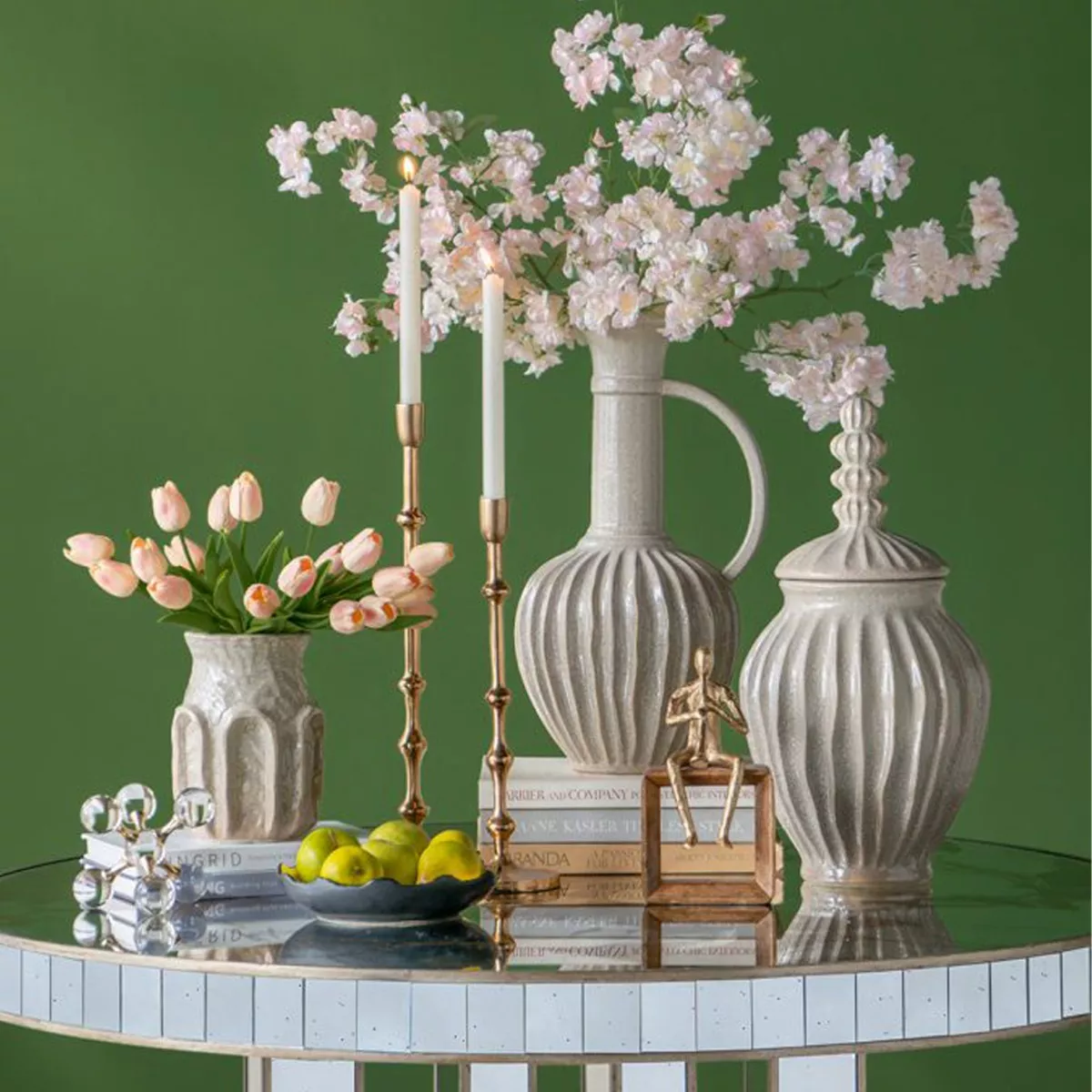 Μπεζ Κεραμικό Διακοσμητικό Βάζο Δοχείο