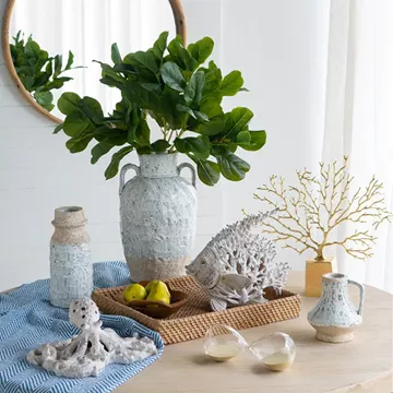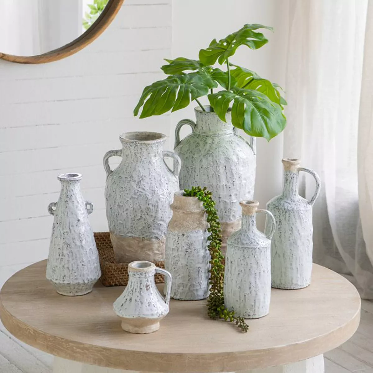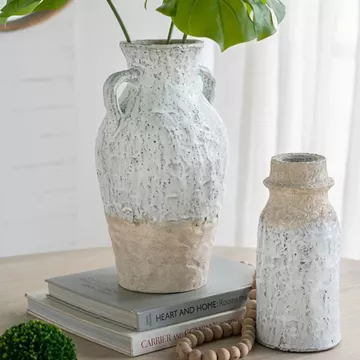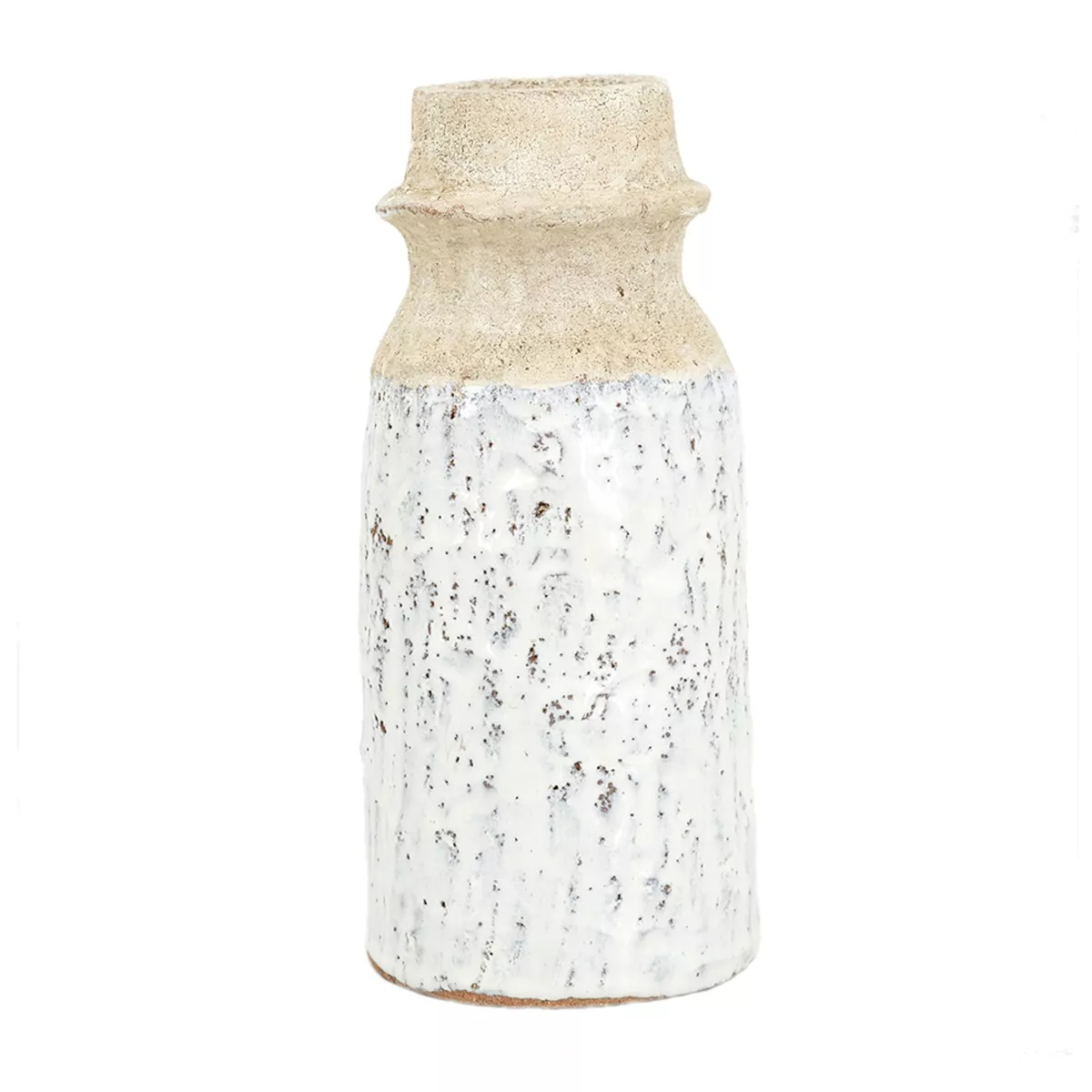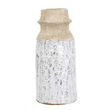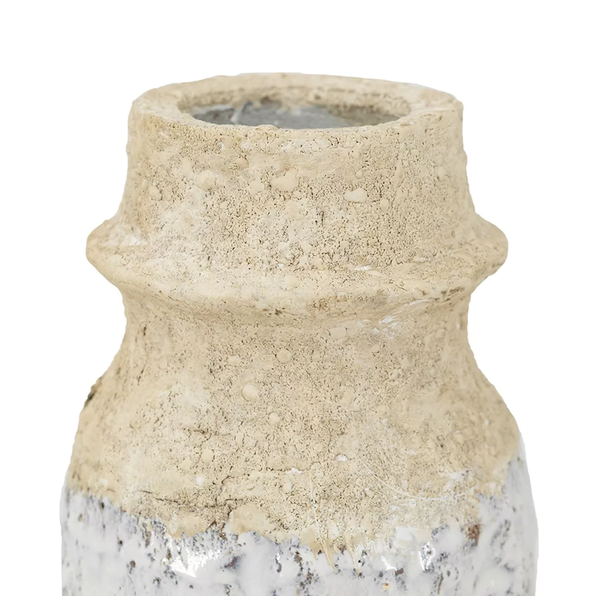 Bard Λευκό Διακοσμητικό Βάζο από Τερακότα με Μπεζ Λεπτομέρειες